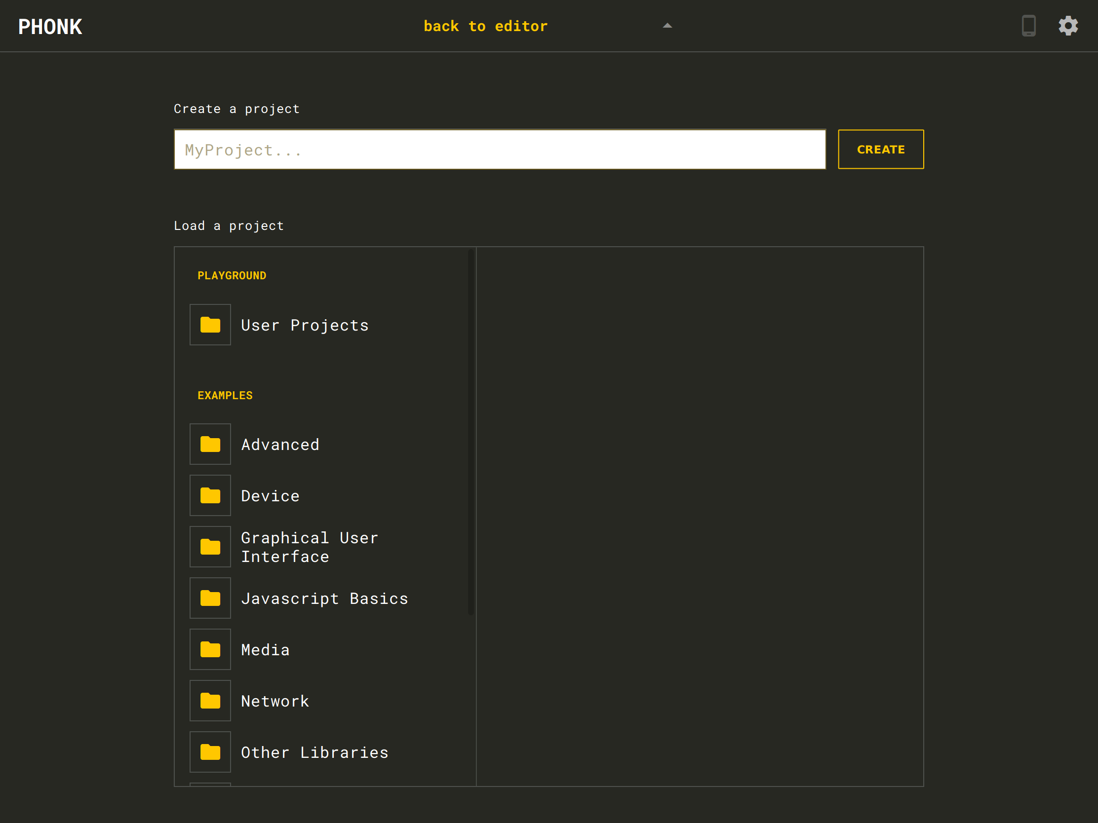 Android-studio + Java to make the PHONK app and Vue.js to make the web editor.
